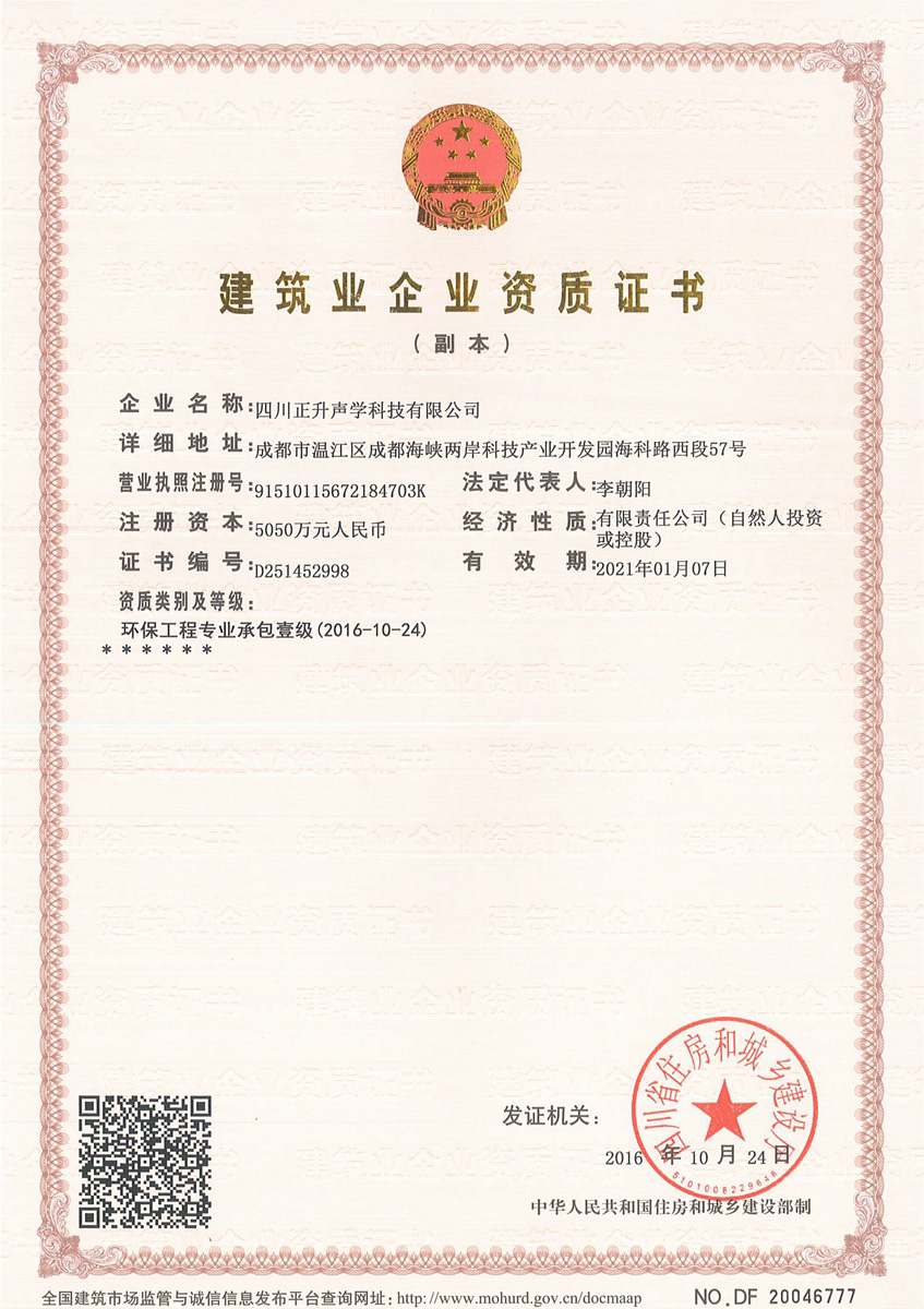 喜報(bào)│祝賀正升聲學(xué)取得環(huán)保工程專業(yè)承包一級(jí)資質(zhì)