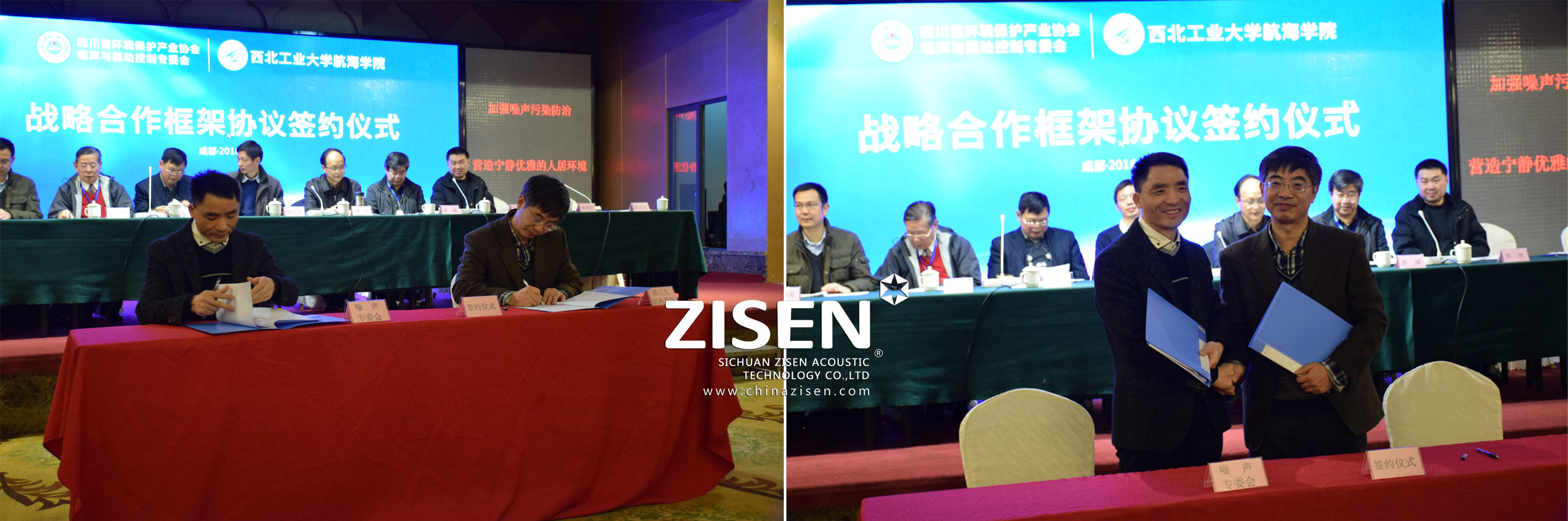 隨后舉行了四川省環(huán)境保護產(chǎn)業(yè)協(xié)會噪聲與振動控制專業(yè)委員會(簡稱川環(huán)協(xié)噪聲委)與西北工業(yè)大學航海學院戰(zhàn)略合作簽約儀式。川環(huán)協(xié)噪聲委和西北工業(yè)大學航海學院,根據(jù)“合作辦學、合作育人、合作就業(yè)、合作發(fā)展、互惠互利、優(yōu)勢互補”的原則,充分利用各自在技術(shù)、生產(chǎn)、實驗、市場、人才等方面的優(yōu)勢資源,就人才培養(yǎng)、科研協(xié)作、成果轉(zhuǎn)化、學術(shù)交流等建立戰(zhàn)略合作伙伴關(guān)系。