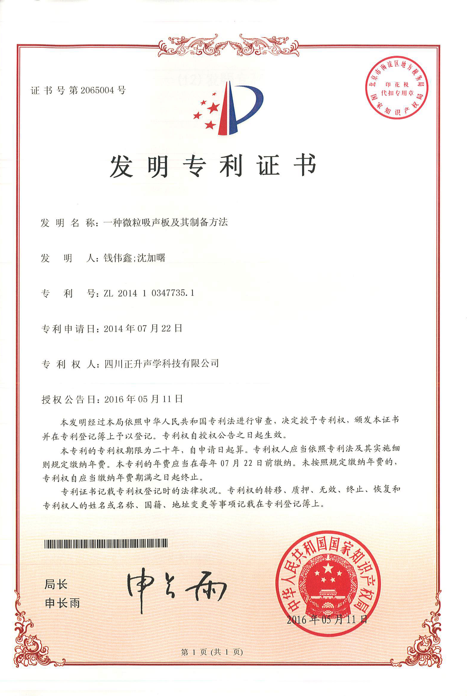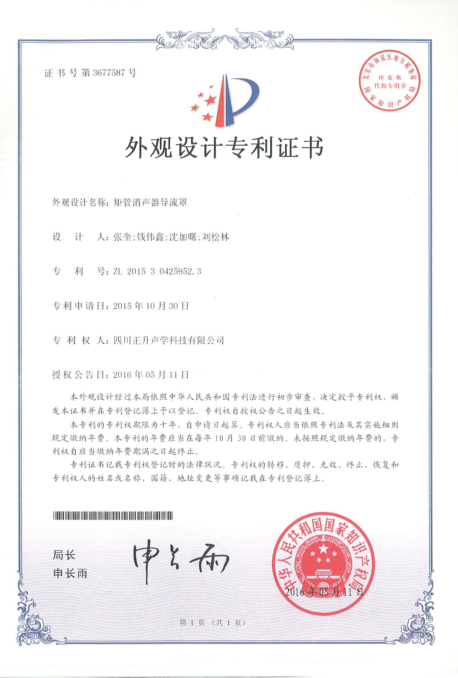 公司板式聚合微粒降噪結(jié)構(gòu)、懸掛式聚合微粒吸聲模塊、矩管消聲器導(dǎo)流罩、一種微粒吸聲板及其制備方法、一種景觀化的聚合微粒吸隔聲聲屏障等實用新型專利授權(quán)且頒發(fā)證書