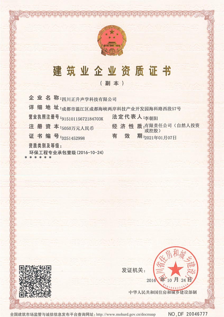 正處在快速發(fā)展期的正升聲學(xué)公司,經(jīng)營(yíng)范圍不斷擴(kuò)展,工程業(yè)績(jī)不斷提高。為促進(jìn)公司經(jīng)營(yíng)業(yè)務(wù)拓展范圍,提高企業(yè)綜合競(jìng)爭(zhēng)力和認(rèn)可度,公司從2015年開(kāi)始積極籌備環(huán)保工程專業(yè)承包一級(jí)資質(zhì)的申報(bào)工作。按照住房和城鄉(xiāng)建設(shè)部令第22號(hào)《建筑業(yè)企業(yè)資質(zhì)管理規(guī)定》的要求,公司于2016年完成環(huán)保工程專業(yè)承包一級(jí)資質(zhì)申請(qǐng)材料的編制,并向四川省住房和城鄉(xiāng)建設(shè)廳予以報(bào)送。